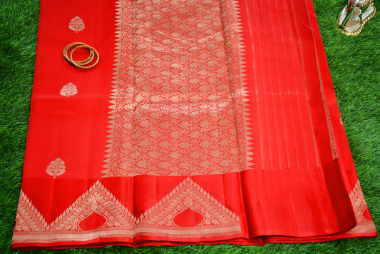 Pure Banarasi,Red Raw Mango /Poona Slk Saree