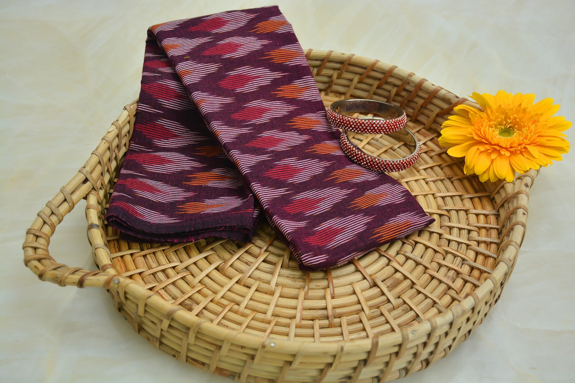 This Ikkat blouse piece is made from pure cotton and handloomed, showcasing the traditional Ikkat pattern. With a length of 1 meter, it provides high quality material for creating a unique and stylish blouse. Elevate your wardrobe with this versatile and durable piece.