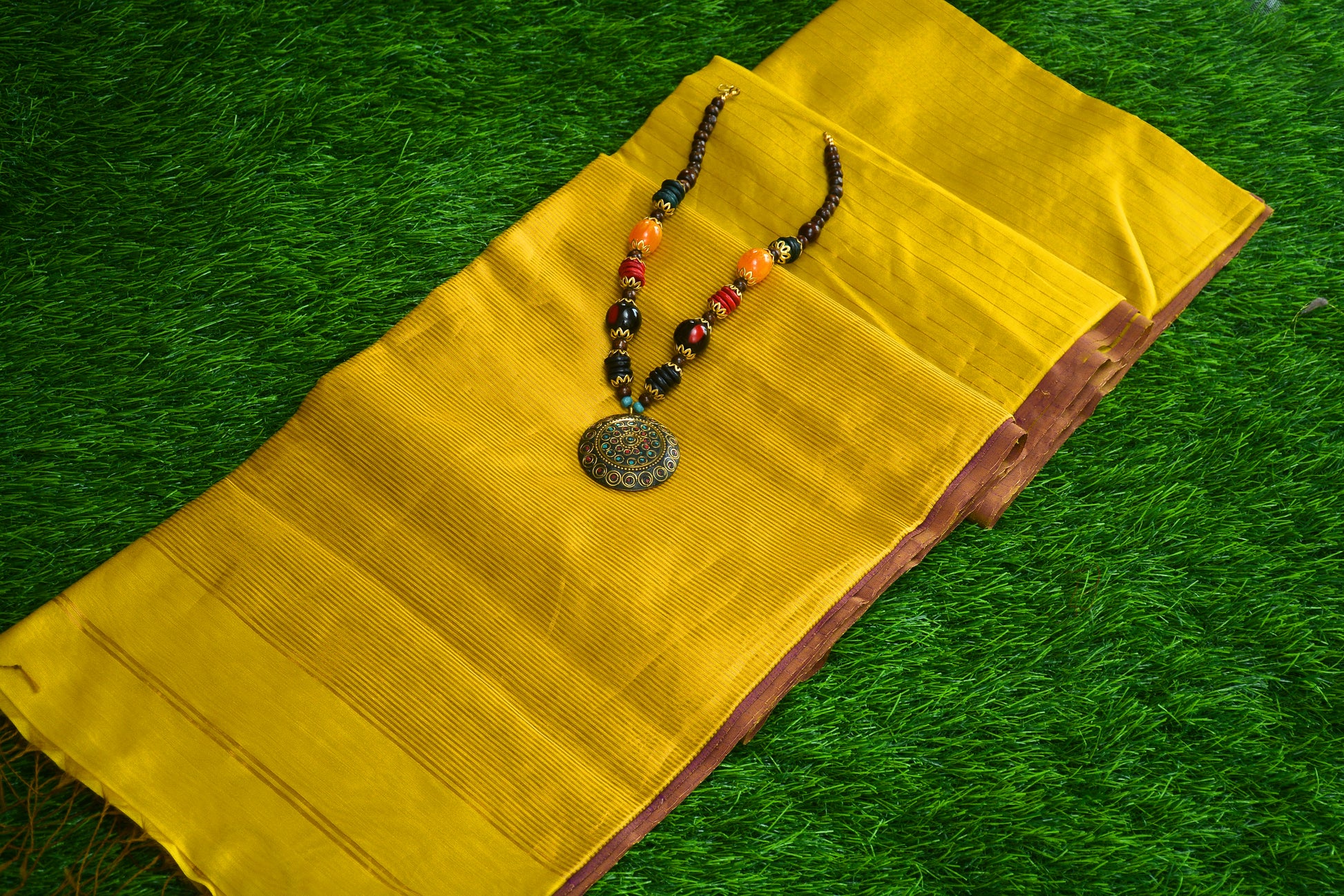 Expertly handwoven, this Maheshwari silk cotton saree boasts fine zari lines for a touch of elegance. The yellow color adds brightness, while the plain blouse and rich zari pallu complete the classic look. Perfect for any occasion, this saree is a must-have for your collection.