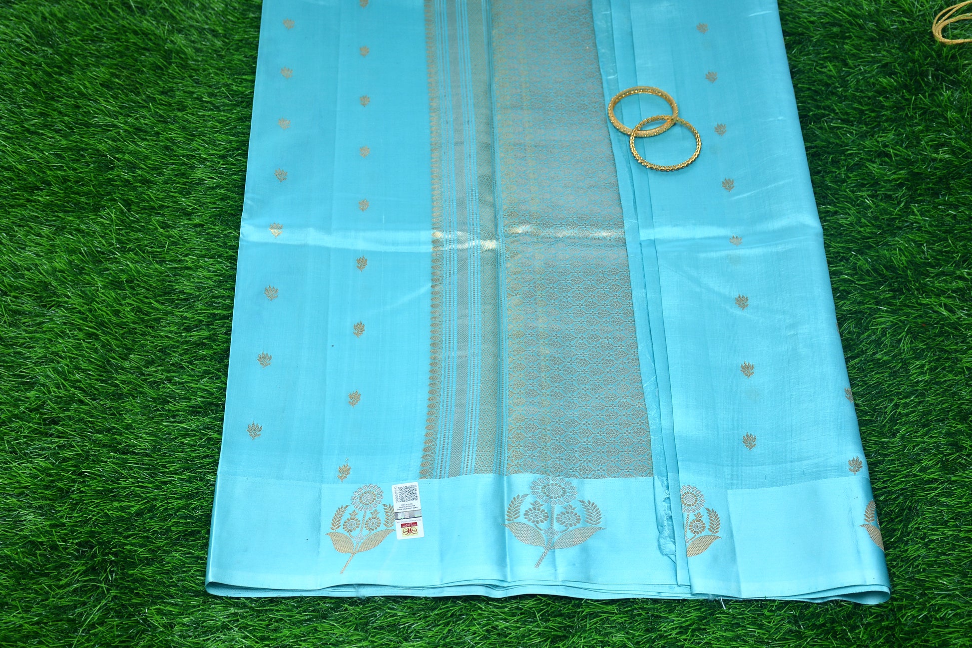 Pure Banarasi Sky Blue Raw mango /poona silk Saree