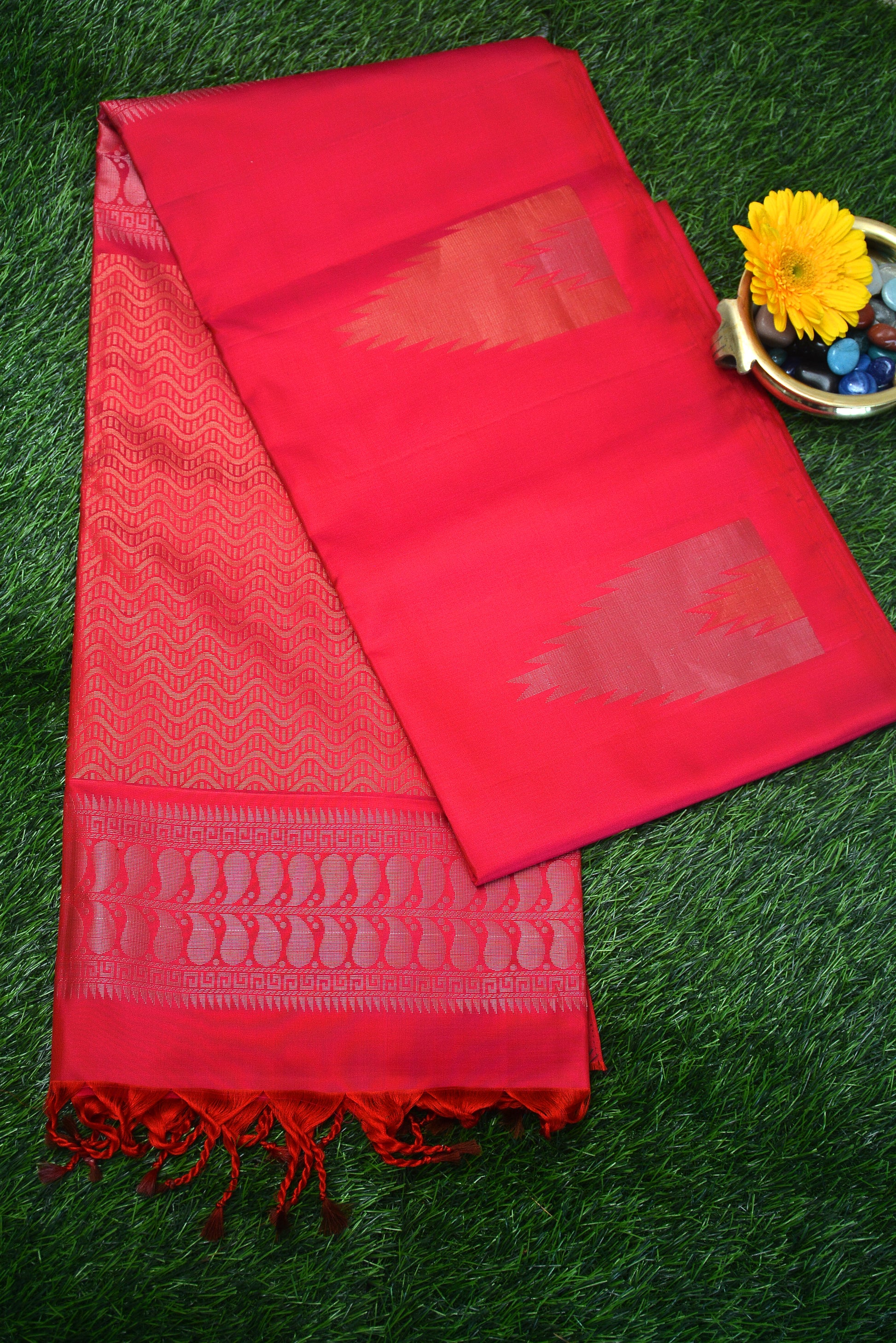 This handloom Pure Soft Silk Saree boasts a Silk Mark certification, ensuring utmost quality. In a stunning deep pink shade with intricate big butas near the border, this saree is a perfect blend of elegance and sophistication. Comes with a running blouse for a complete look.
